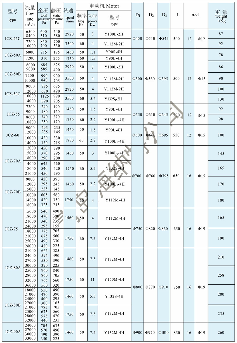 靜壓: 900Pa 電機頻率: 60Hz