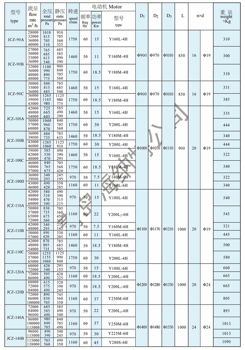 | 全壓: | 665Pa | 電機功率: | 15kW |