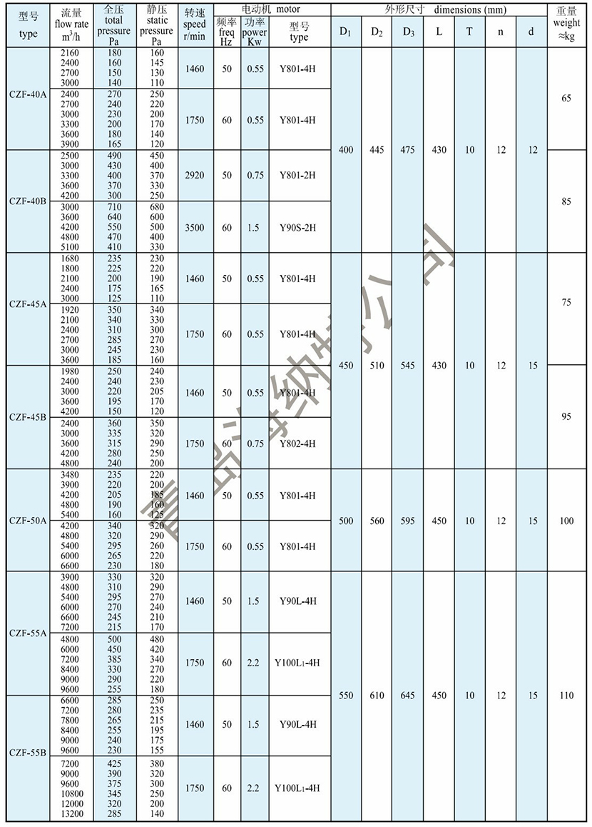| 全壓: | 385Pa | 電機功率: | 2.2kW |