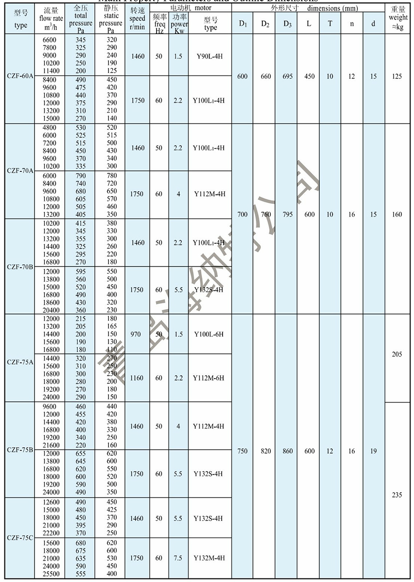 靜壓: 400Pa 電機頻率: 60Hz