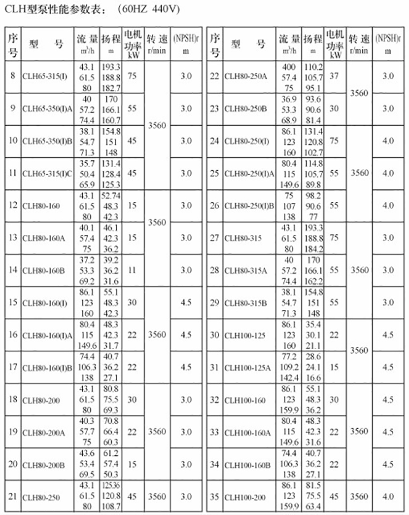 流量: 53.6m3/h 汽蝕余量: 3.0m
