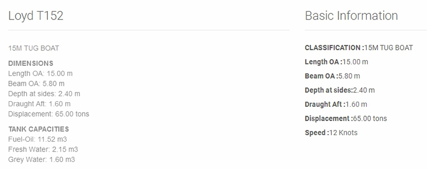 總長: 15m 航速: 12kn
