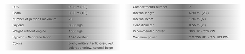 總長: 9.05m 發動機功率: 2×250hp