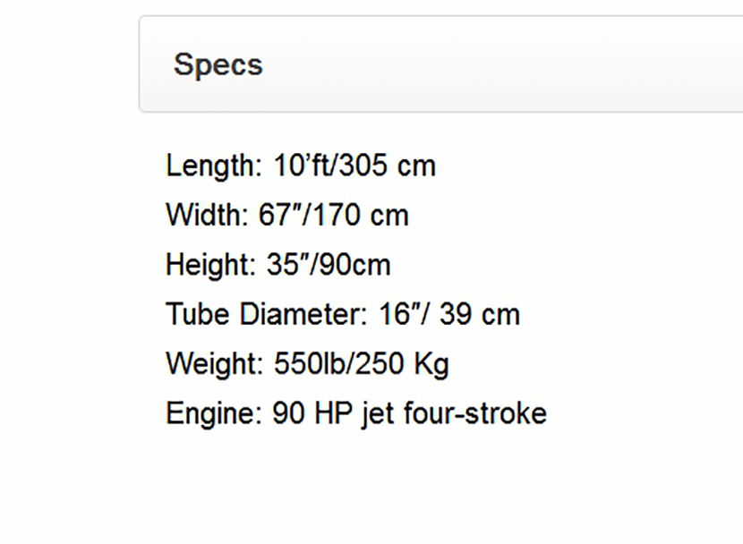 總長: 3.05m 總重量: 250kg