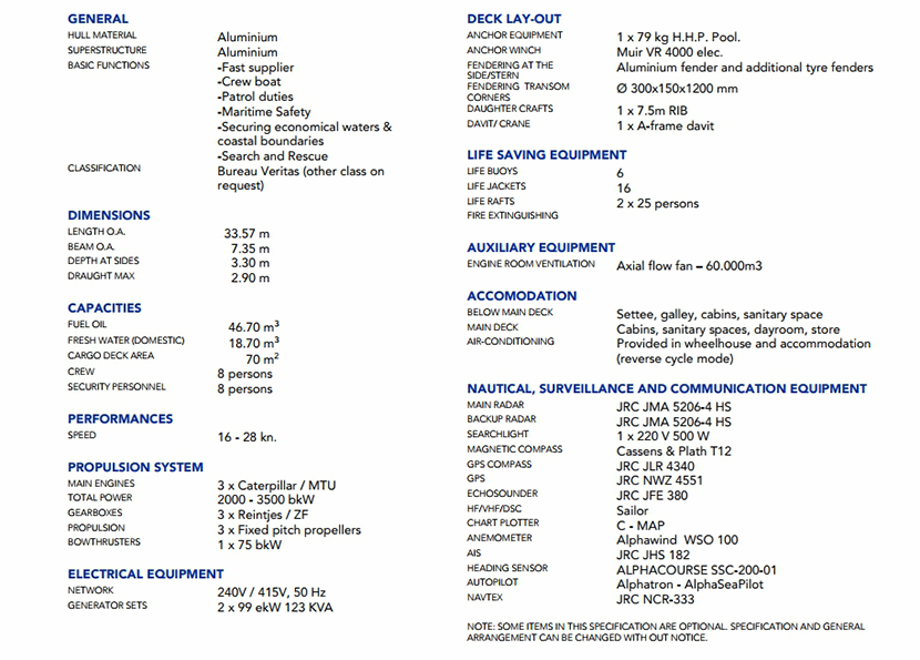 發電機組: 3×Caterpilar /MTU 船組人員: 8 P