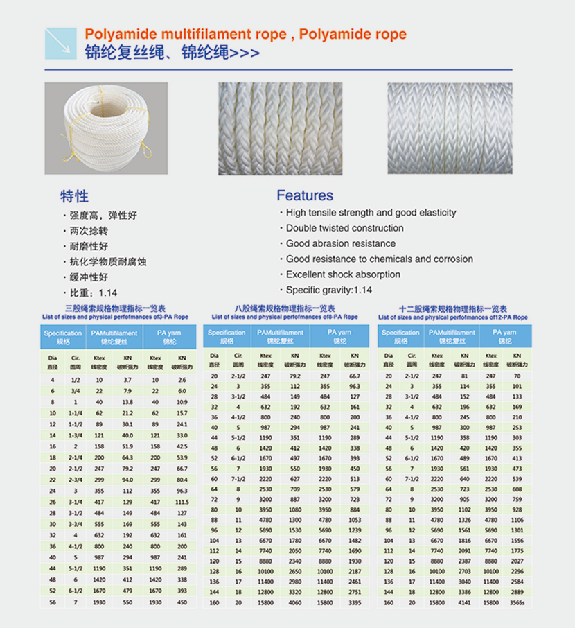 | 錦綸復絲繩、錦綸繩(八股) | |||