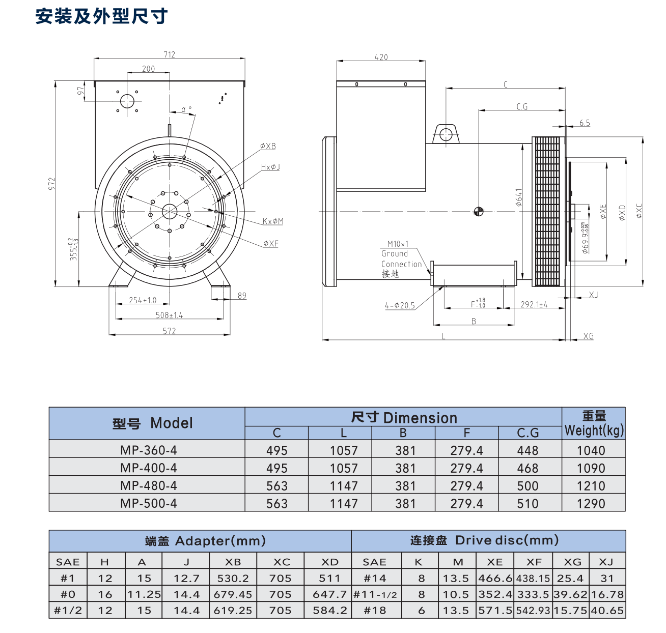 | MP500無刷同步交流發電機60HZ | |||