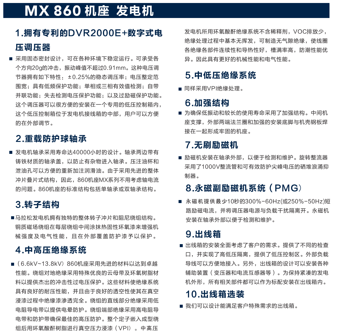 | MX860無刷同步交流發(fā)電機50HZ高壓11000V | |||
