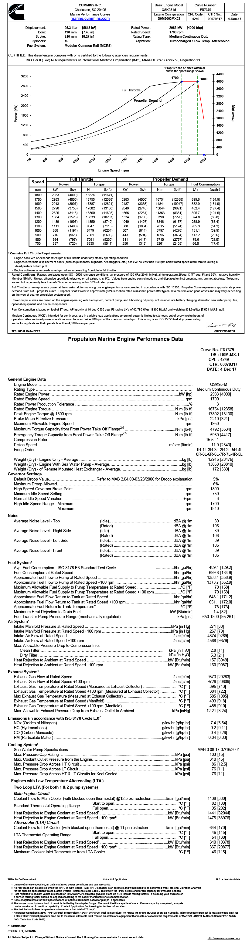 進氣方式: Turbocharged/ Low Temp. Aftercooled 最大扭矩: 17802N.M(轉速為1500rpm下的最大扭矩)