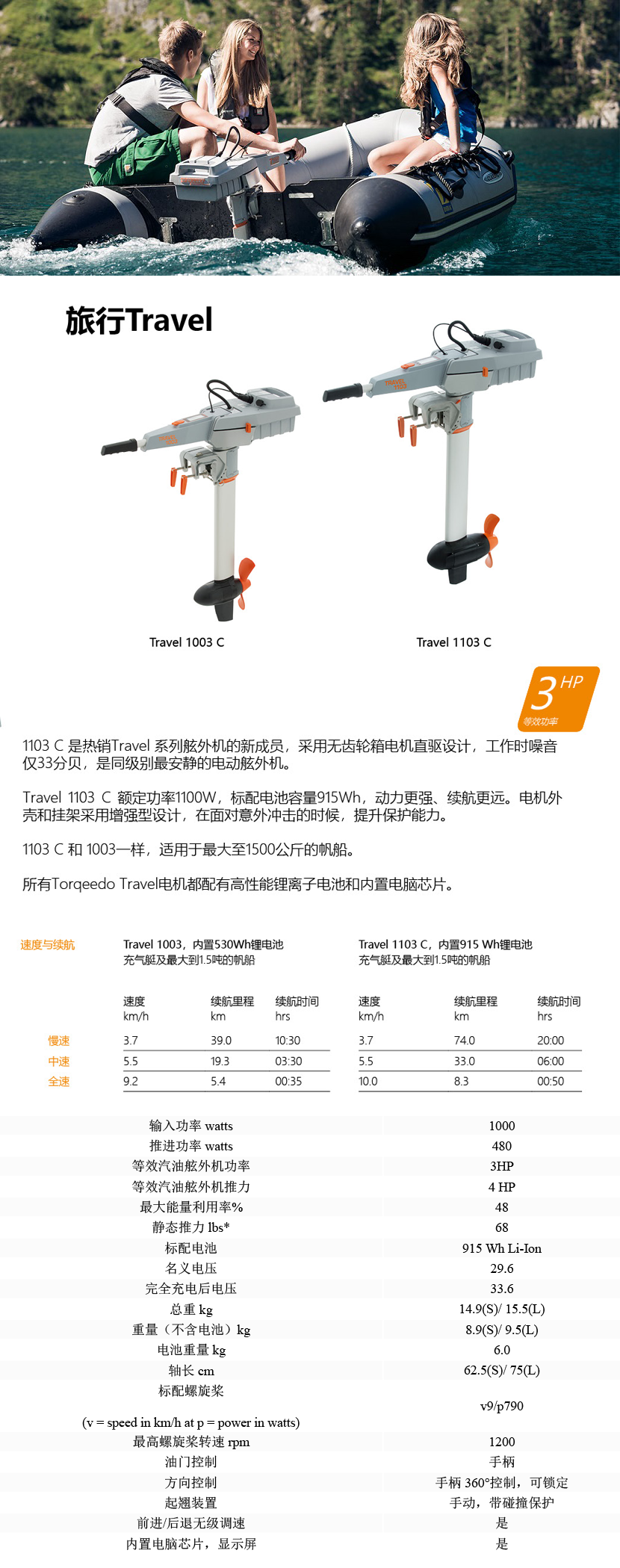 平臺 Travel 1003 C靜音電動舷外機