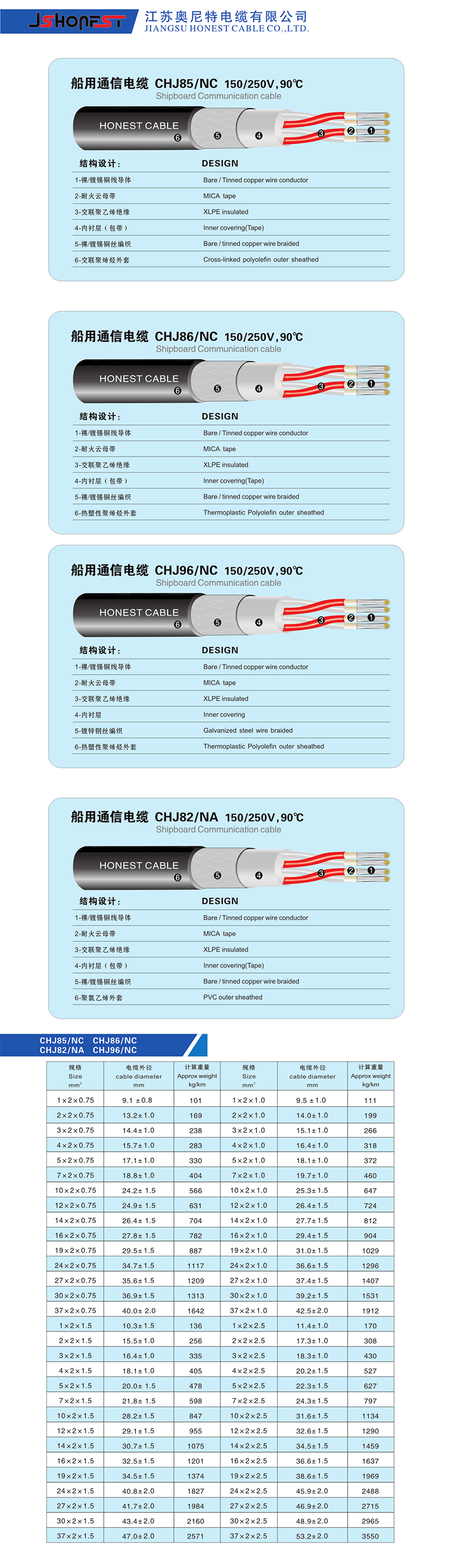 類型: 船用通信電纜 名義直徑: 9.1±0.8mm