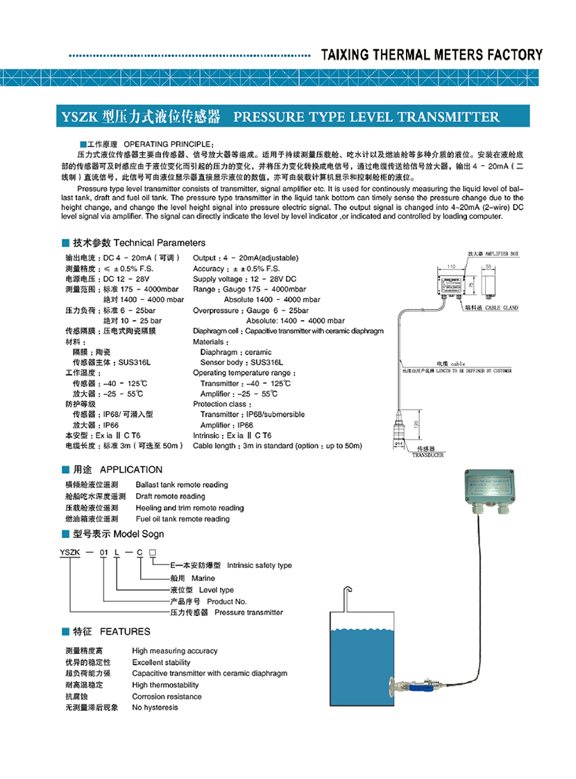 | YSZK型壓力式液位傳感器 | |||