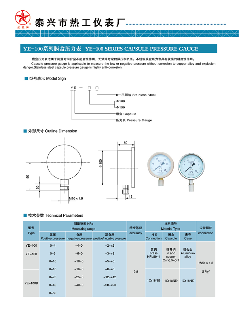 YE-100系列膜盒壓力表