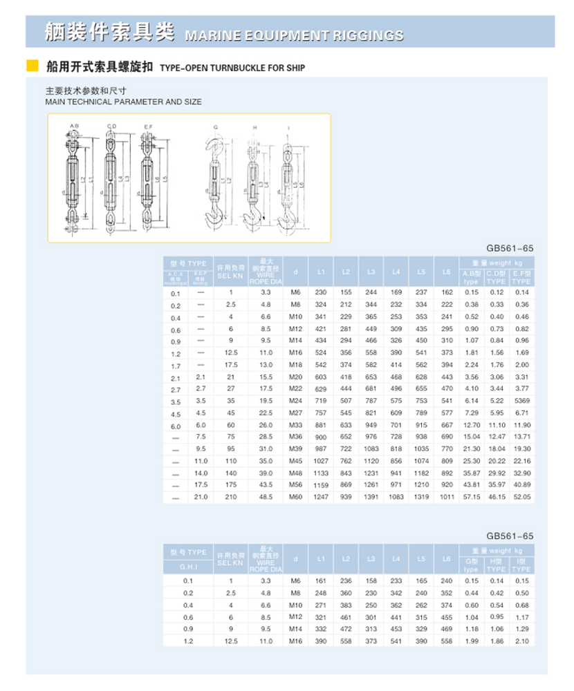 | 船用開式索具螺旋扣 | |||