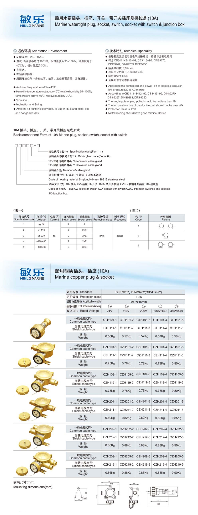 艦船用10A銅質插頭